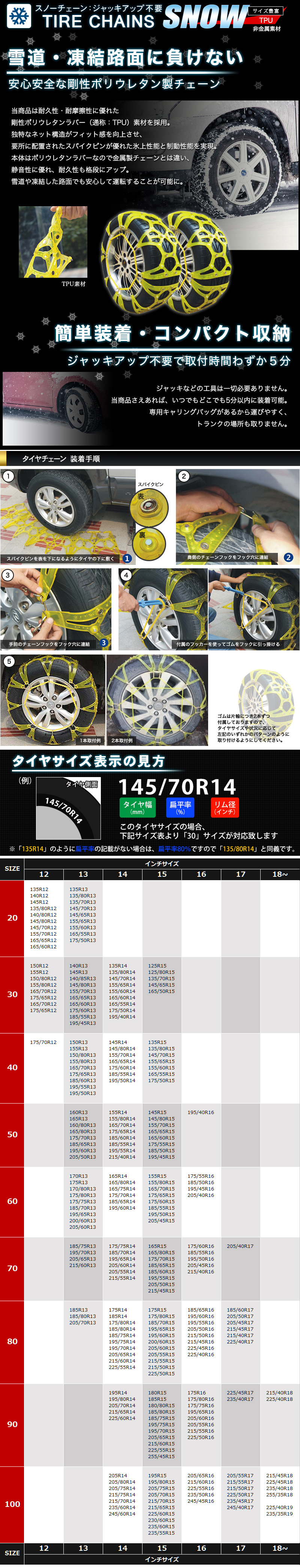 タイヤチェーン 175R13 185/70R13 195/65R13 205/60R13 165R14 165/75R14 175/70R14 185/65R14 195/60R14 155R15 165/70R15 [非金属60]